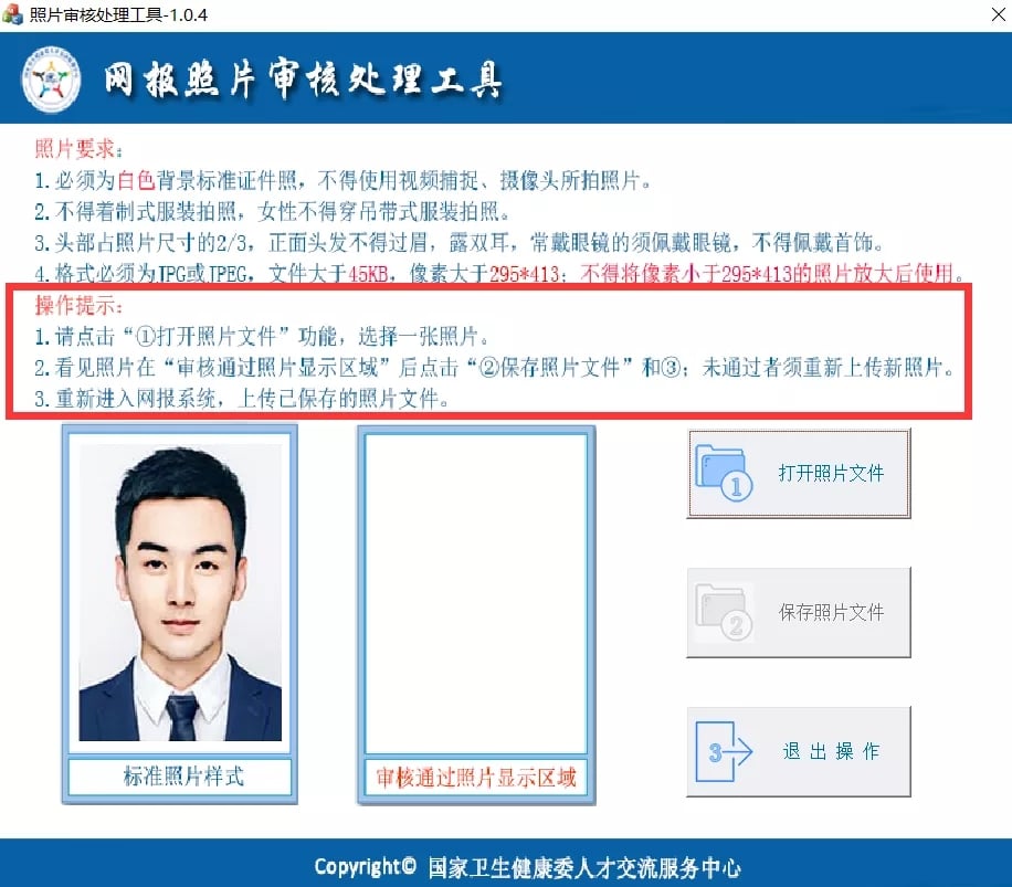 认真阅读照片要求,下载“照片审核处理工具”,解压后点击“照片处理工具.exe”。