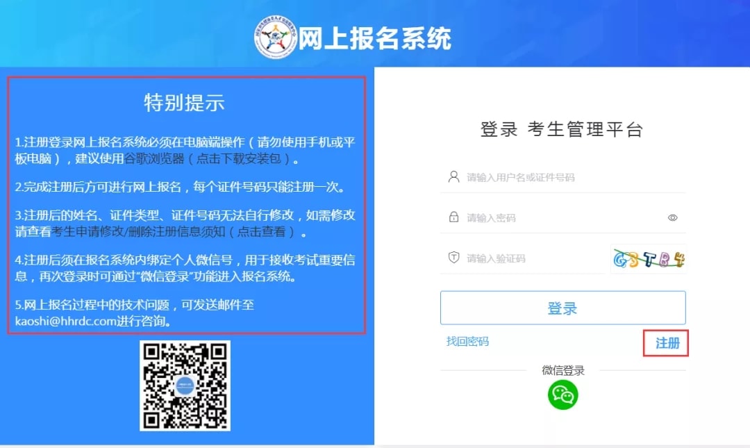1.务必由考生本人进行注册操作,确保信息真实有效。点击“注册”后信息将无法自行修改,请认真核对填写内容。