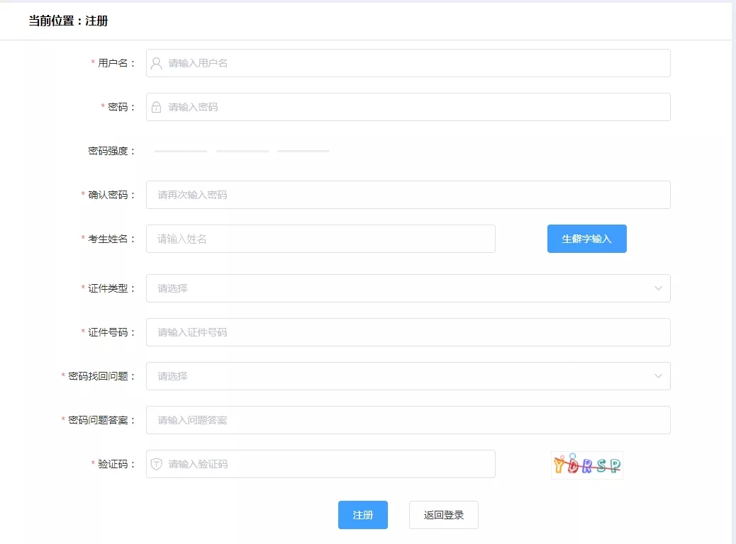 3. 注册成功后,考生应牢记用户名、密码和密码找回问题、答案,它们是找回密码操作的唯一途径。