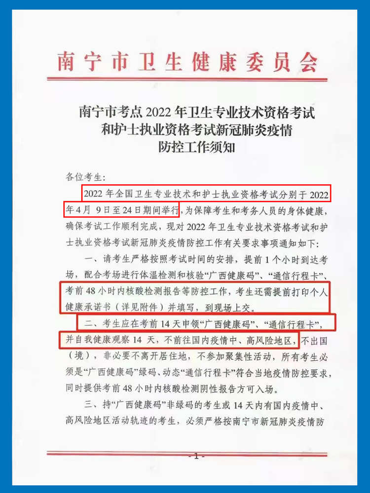 关于南宁市2022卫生资格考试和执业护士考试通知