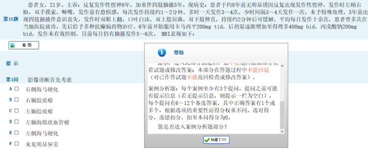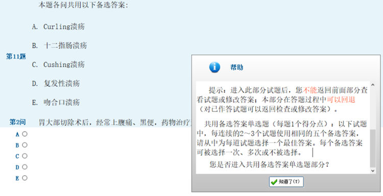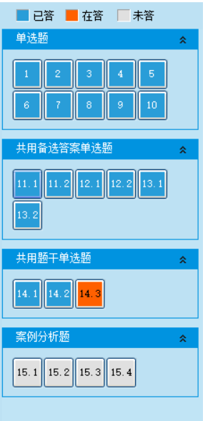 答题顺序依次为:单选题、共用备选答案题、共用题干单选题、案例分析题。