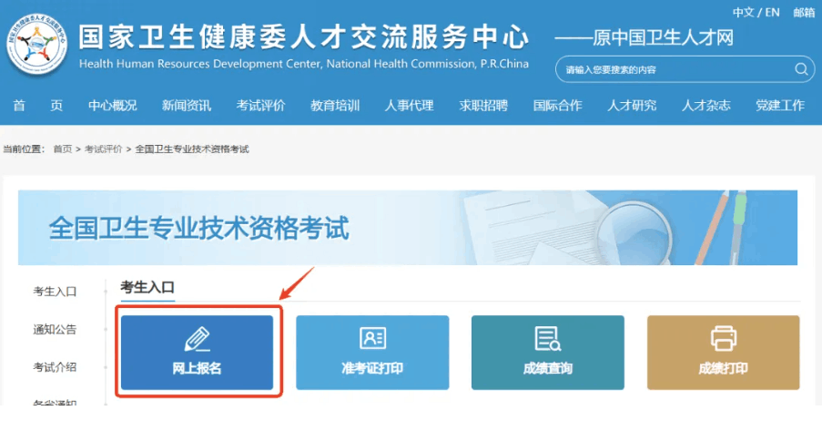 1. 登录 国家卫生健康委人才交流服务中心官方网站 ( www.21wecan.com),进入“卫生专业技术资格考试”。