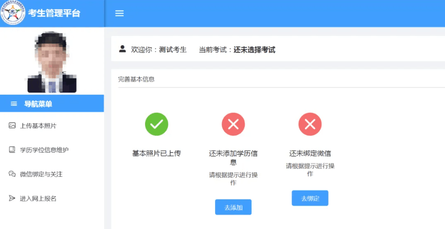(5)照片上传成功后,页面左上角会显示考生照片。